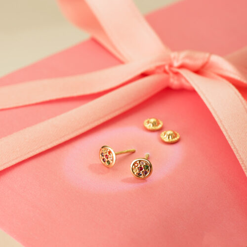 18K PENDIENTES ORO AMARILLO REDONDOS CON CIRCONITAS COLORES 5,5 MM CIERRE TUERCA