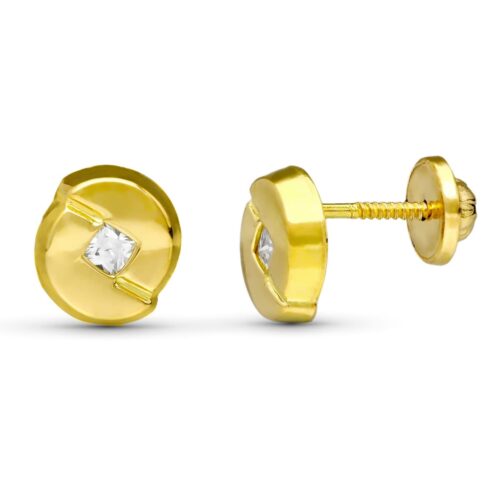 18K PENDIENTES ORO AMARILLO TRIANGULO CON CIRCONITA 5X5 MM. CIERRE TUERCA