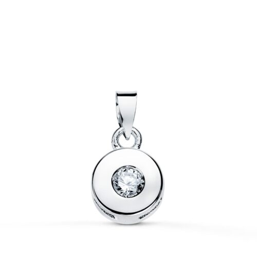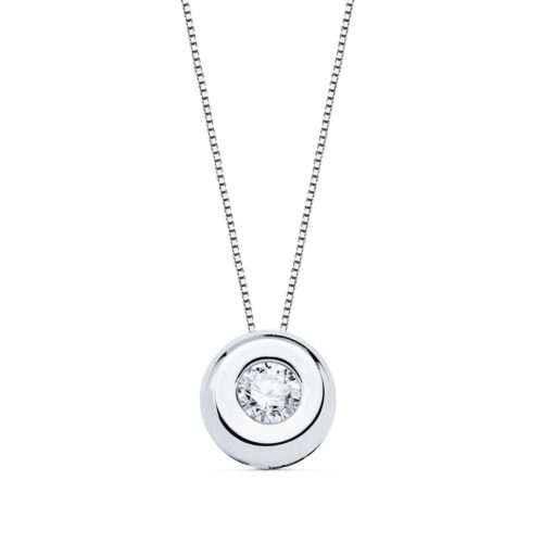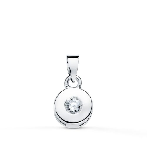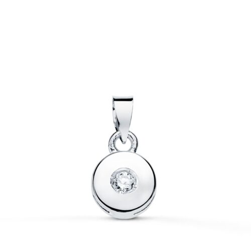 18K COLGANTE ORO BLANCO CHATON 5.5 MM DIAMANTE TALLA BRILLANTE 0.05 QTS SI-H