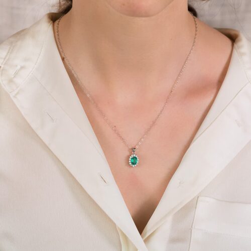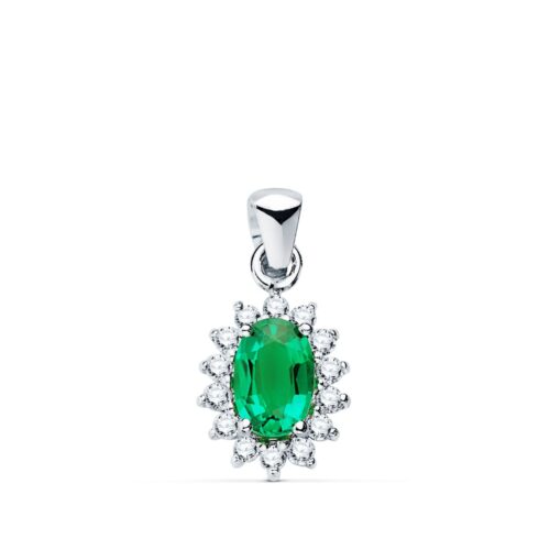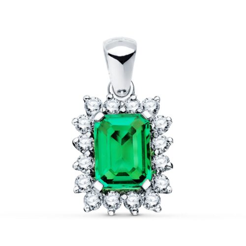 18K COLGANTE O.BLANCO ESMERALDA 0.39 QT. 14 DIAMANTES 0.14 QTS. SI-H. 10X8 MM
