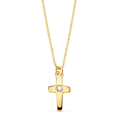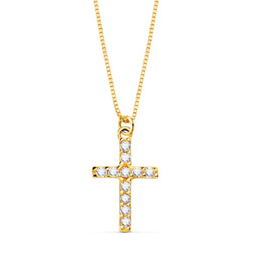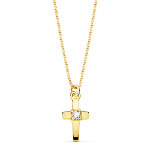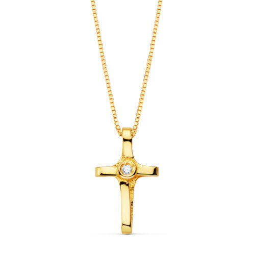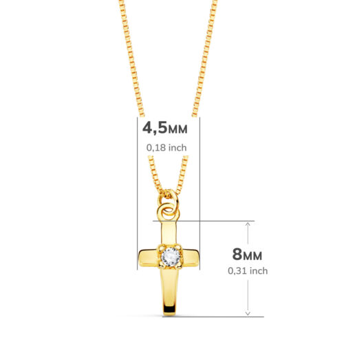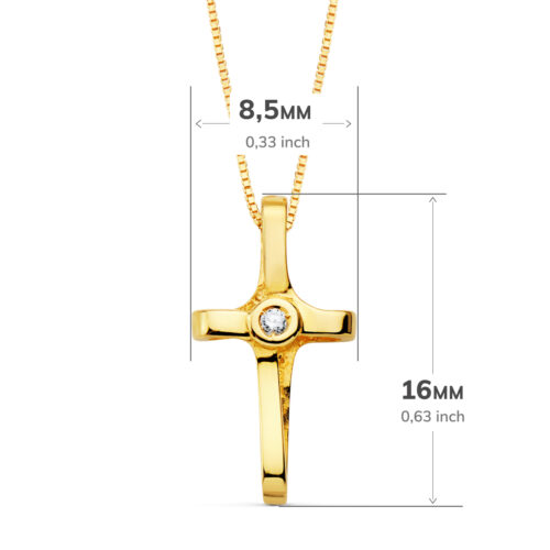 18K GARGANTILLA CRUZ 8X5MM 1 DIAMANTE 0.015QT. CADENA VENECIANA 45CM G-VS2
