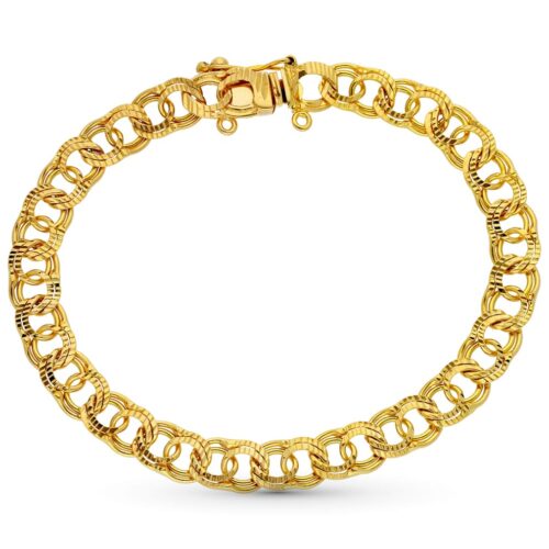 18K PULSERA ESCLAVA ORO AMARILLO BARBADA HUECA ANCHO: 7MM. LARGO: 21,5 CM. CHAPA: 42X10MM