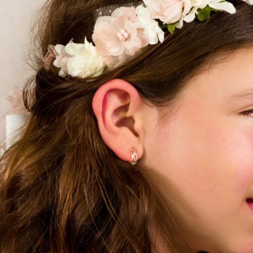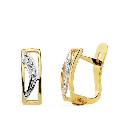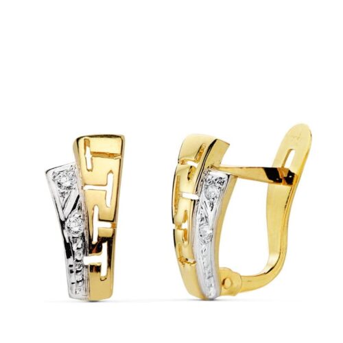 18K PENDIENTES ORO AMARILLO GRECA CIRCONITA CUADRADA 15X6 MM CIERRE PRESION