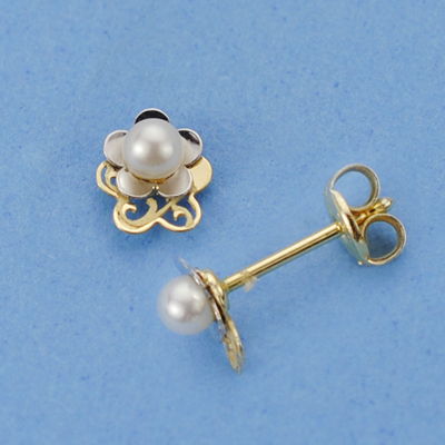 18K PENDIENTES ORO AMARILLO FLOR CALADA CON PERLA DE 2 MM. ANCHO: 5X5 MM. CIERRE TUERCA