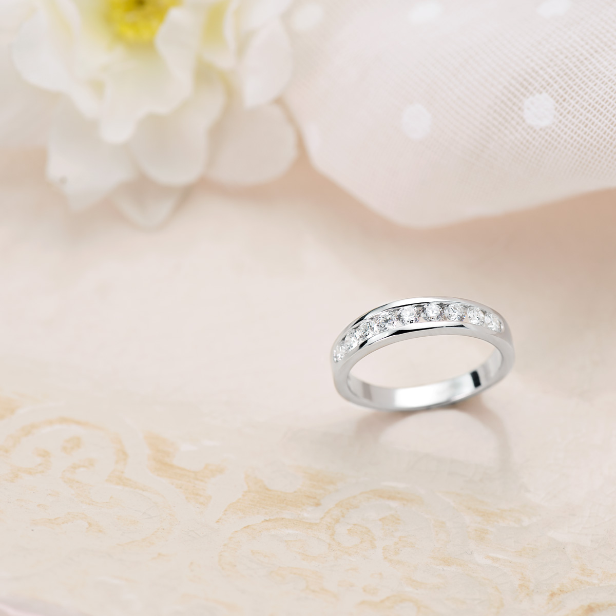 18K ALIANZA 9 DIAMANTES ORO BLANCO 0.50 QTES PUREZA VS2 COLOR G TALLA BRILLANTE