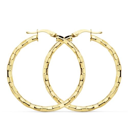 18K AROS ORO AMARILLO HUECOS RETORCIDOS. 20 X 2 MM.