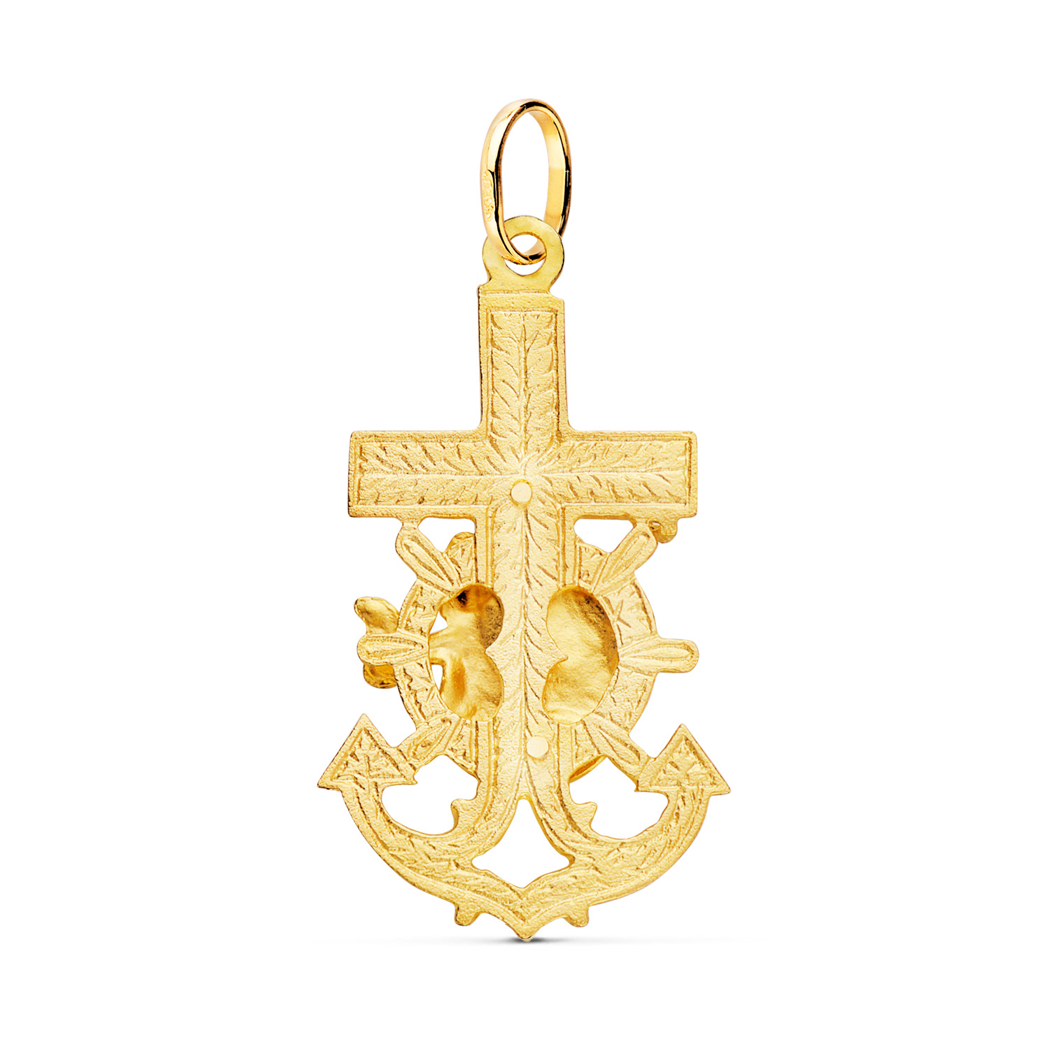 18K CRUZ MARINERA ORO AMARILLO VIRGEN DEL CARMEN TALLADA 40X22 MM