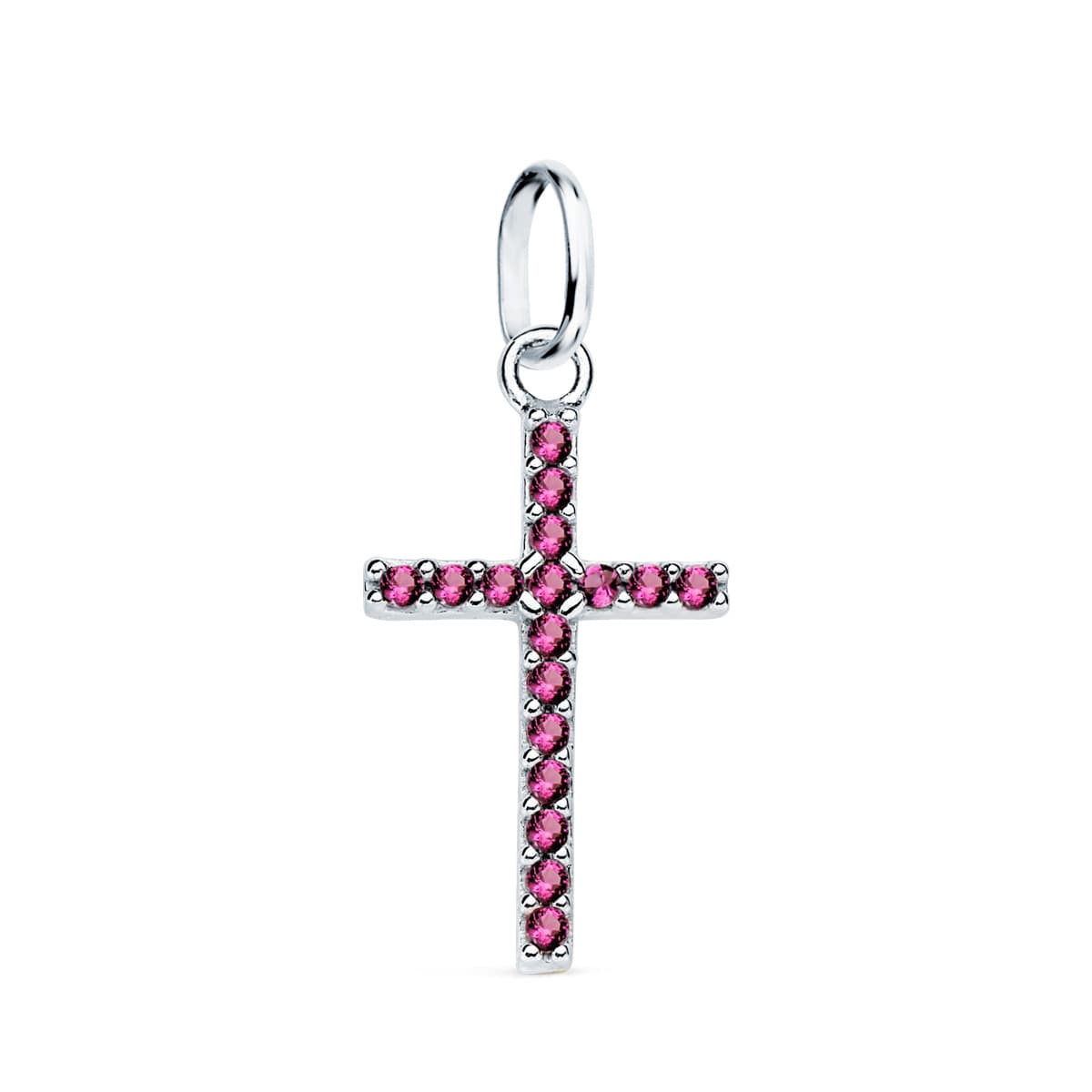 18K CRUZ ORO BLANCO CON CIRCONITAS AMATISTAS. 16 X 10 MM