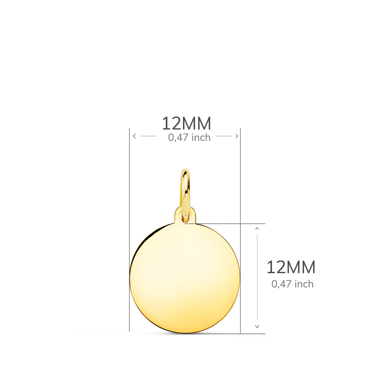 18K CHAPA DISCO ORO AMARILLO LISO EN BRILLO 12 MM