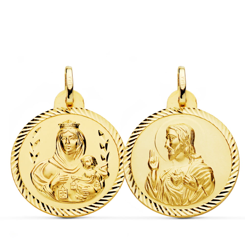 18K ESCAPULARIO HELICE VIRGEN CARMEN Y CORAZON DE JESUS 24 MM
