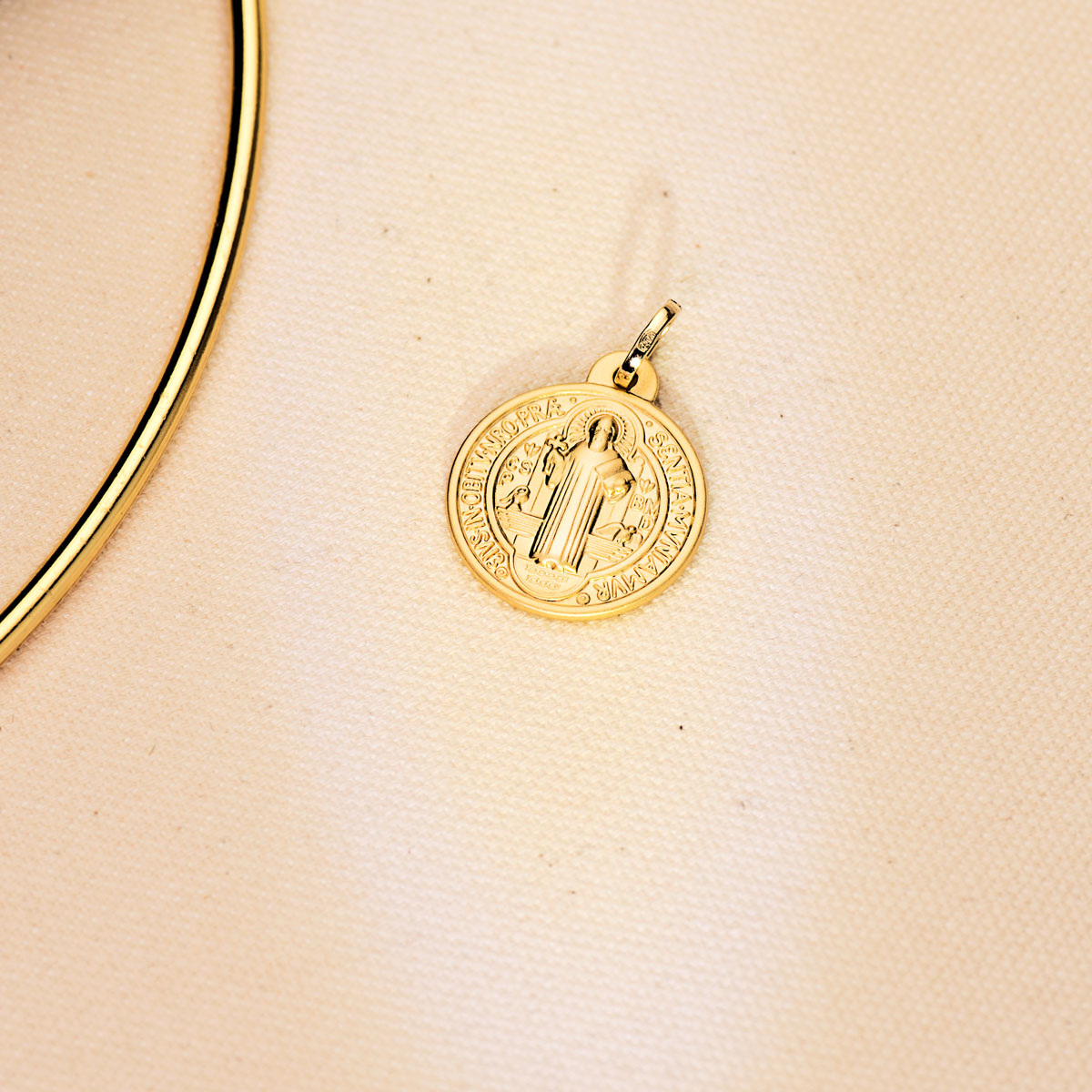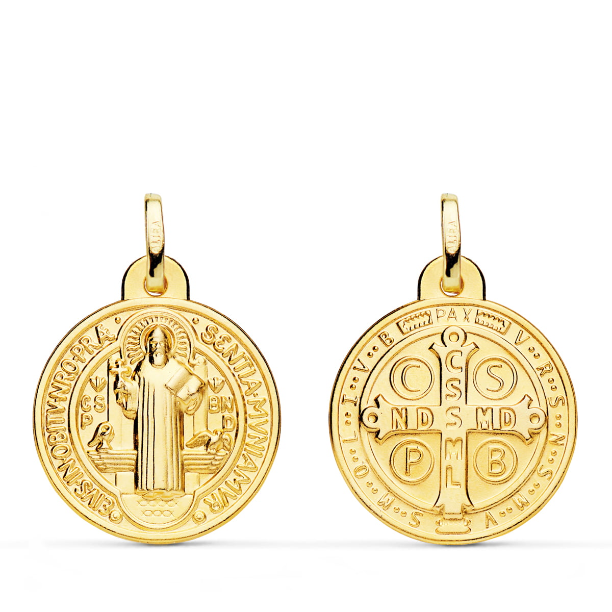 18K ESCAPULARIO MEDALLA SAN BENITO MONJE 20 MM