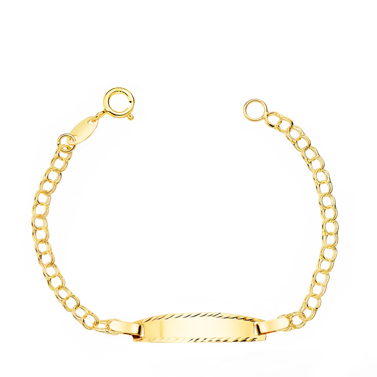 18K ESCLAVA BEBE ORO AMARILLO HUNGARINA CHAPA BRILLO TALLADA 19 X 4 MM. 11,5 CM