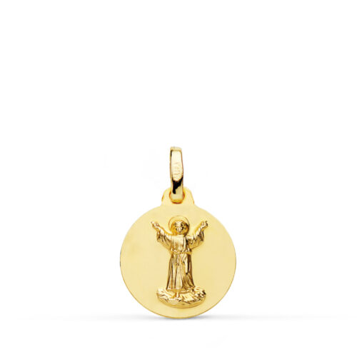 18K MEDALLA ANGEL DE LA GUARDA CON NIÑO TALLADA 16 MM