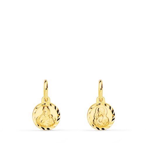 18K MEDALLA ANGEL NIÑO BURLON CON PAJARO BISEL 14 MM
