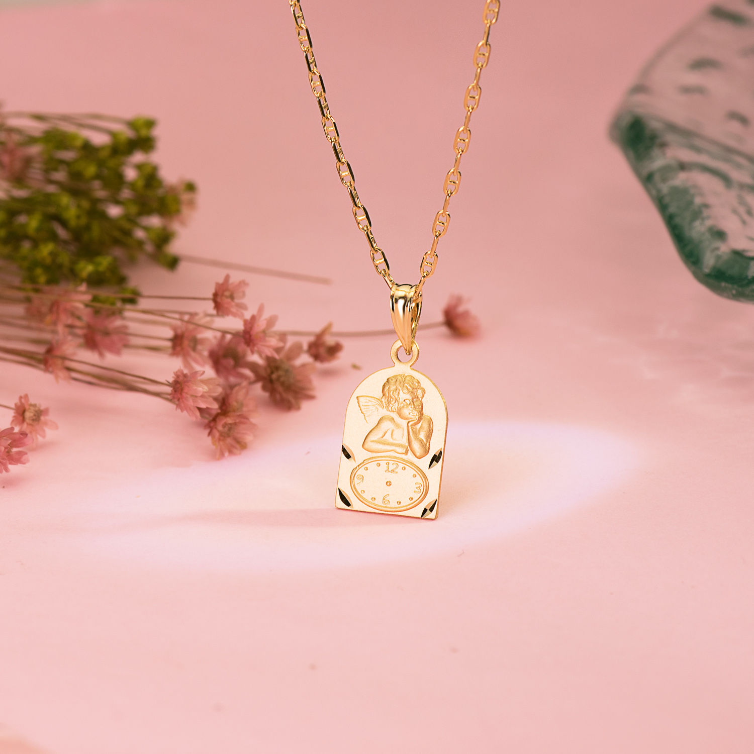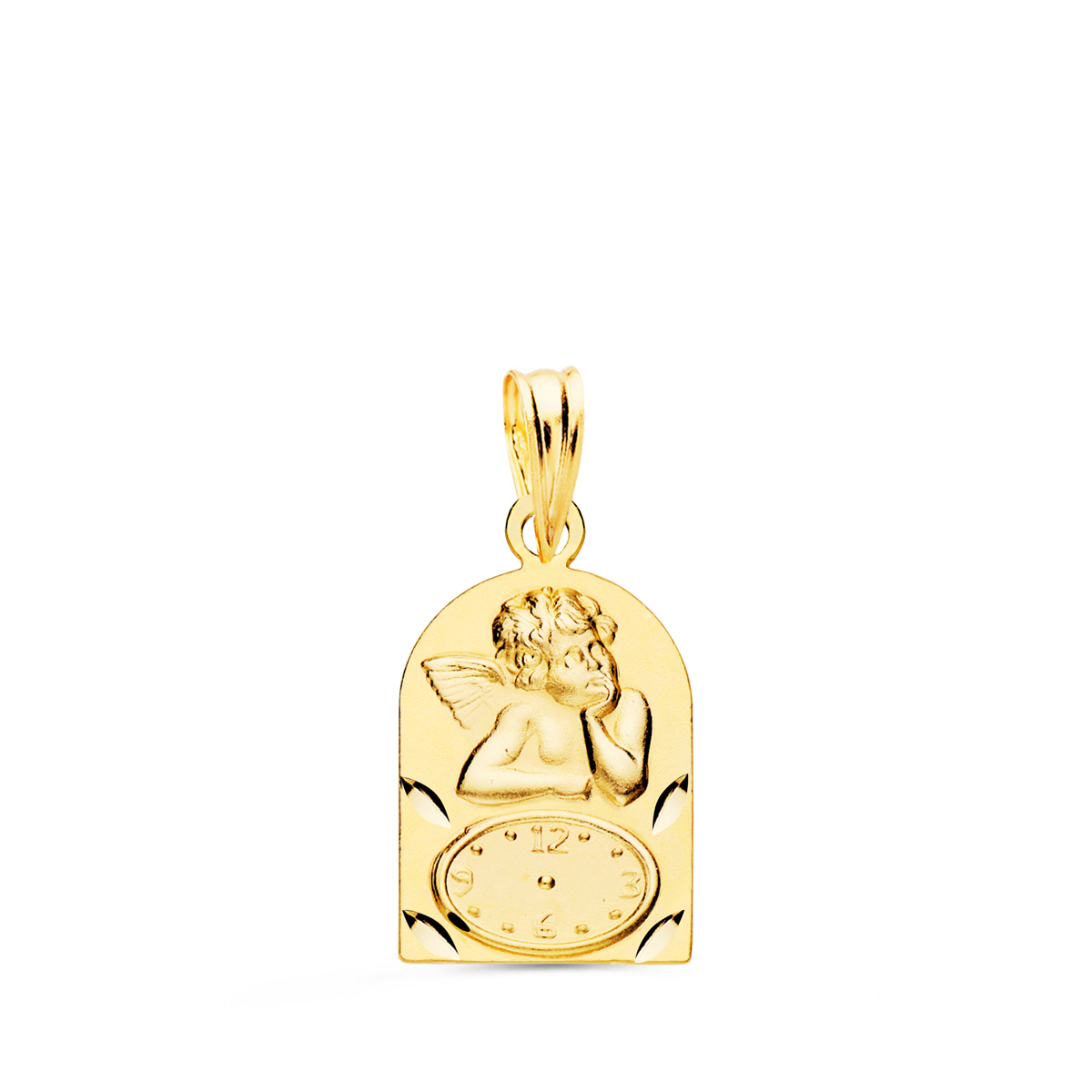 18K MEDALLA ARCO ANGELITO BUROL CON RELOJ TALLADA. 18 X 11 MM