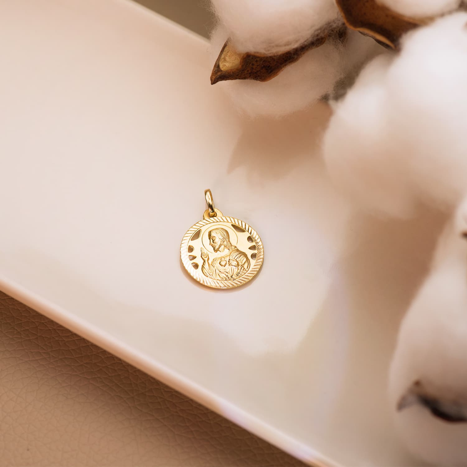 18K MEDALLA CRISTO SAGRADO CORAZON DE JESUS HELICE CALADO 18 MM