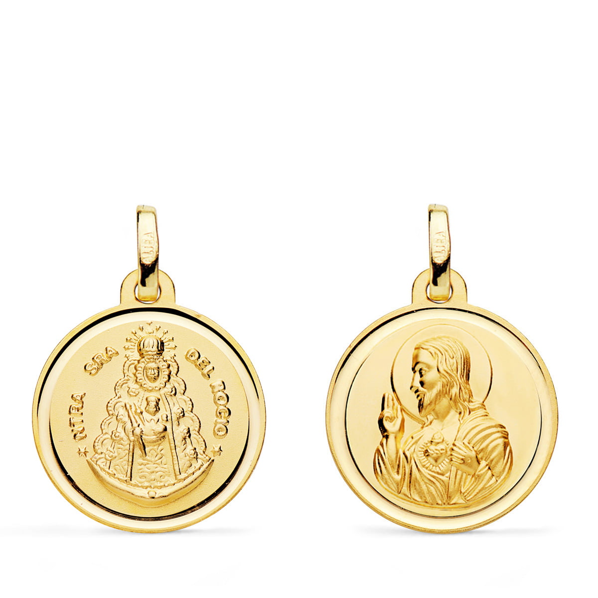 18K MEDALLA ESCAPULARIO VIRGEN DEL ROCIO Y CORAZON JESUS 18 MM