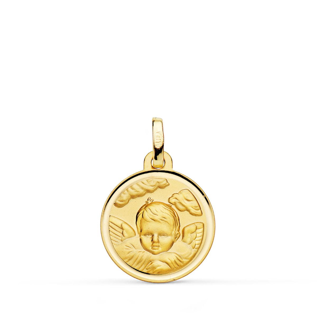 18K MEDALLA ORO AMARILLO ANGEL NIÑO EN LA NUBE BISEL. 16 MM