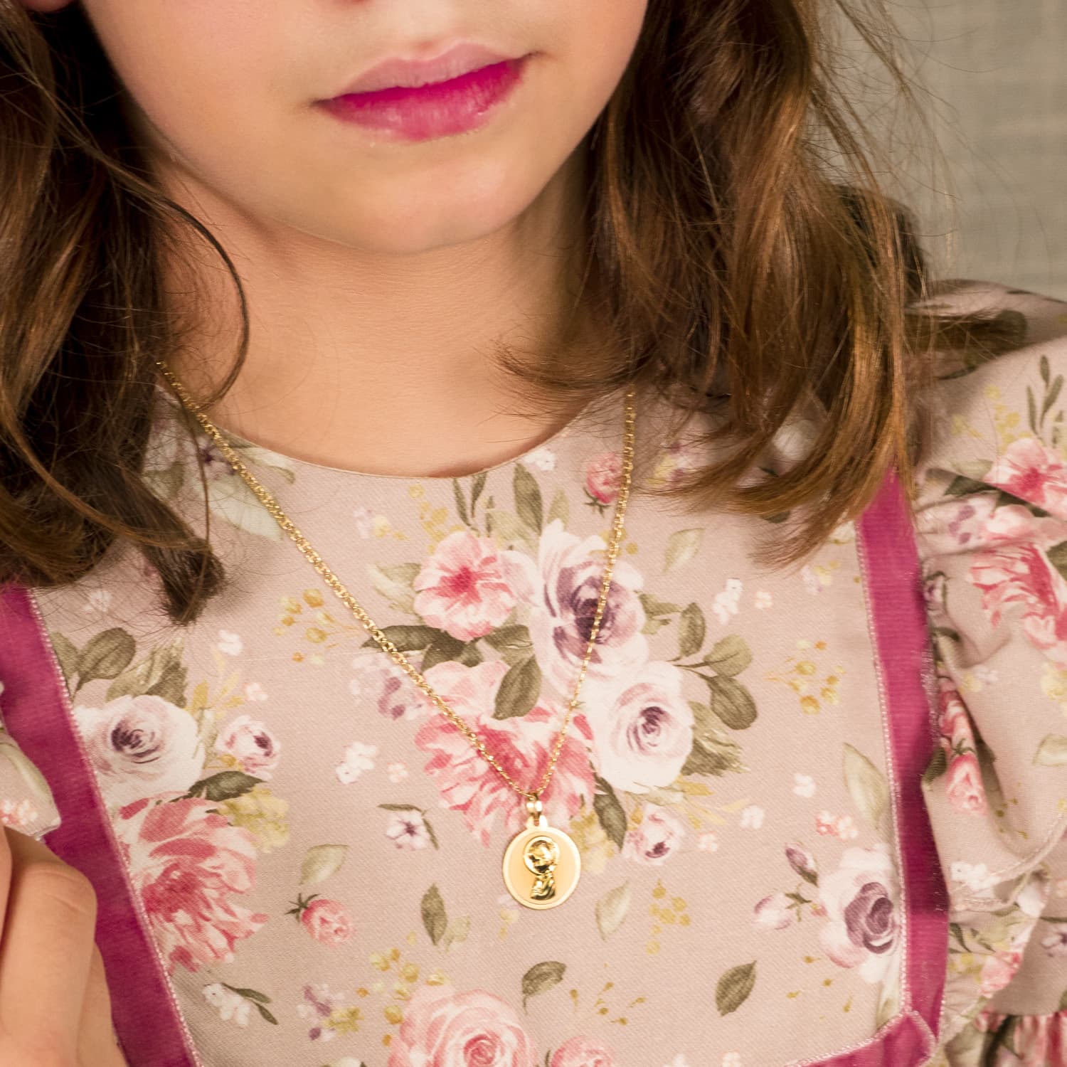 18K MEDALLA ORO AMARILLO VIRGEN REZANDO EN BRILLO. 18 MM