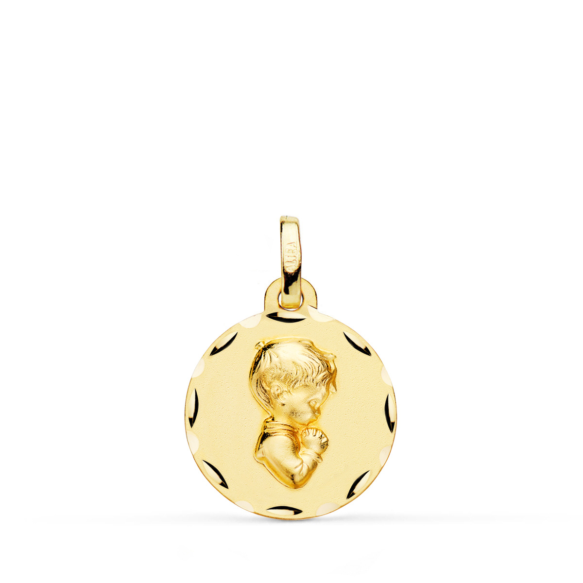 18K MEDALLA NIÑO DE COMUNION PERFIL TALLADA 16 MM