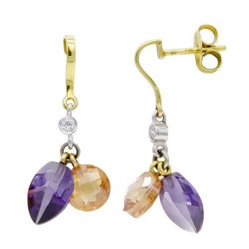18K PENDIENTES ORO BICOLOR PIEDRAS AMATISTA Y KUNCITA