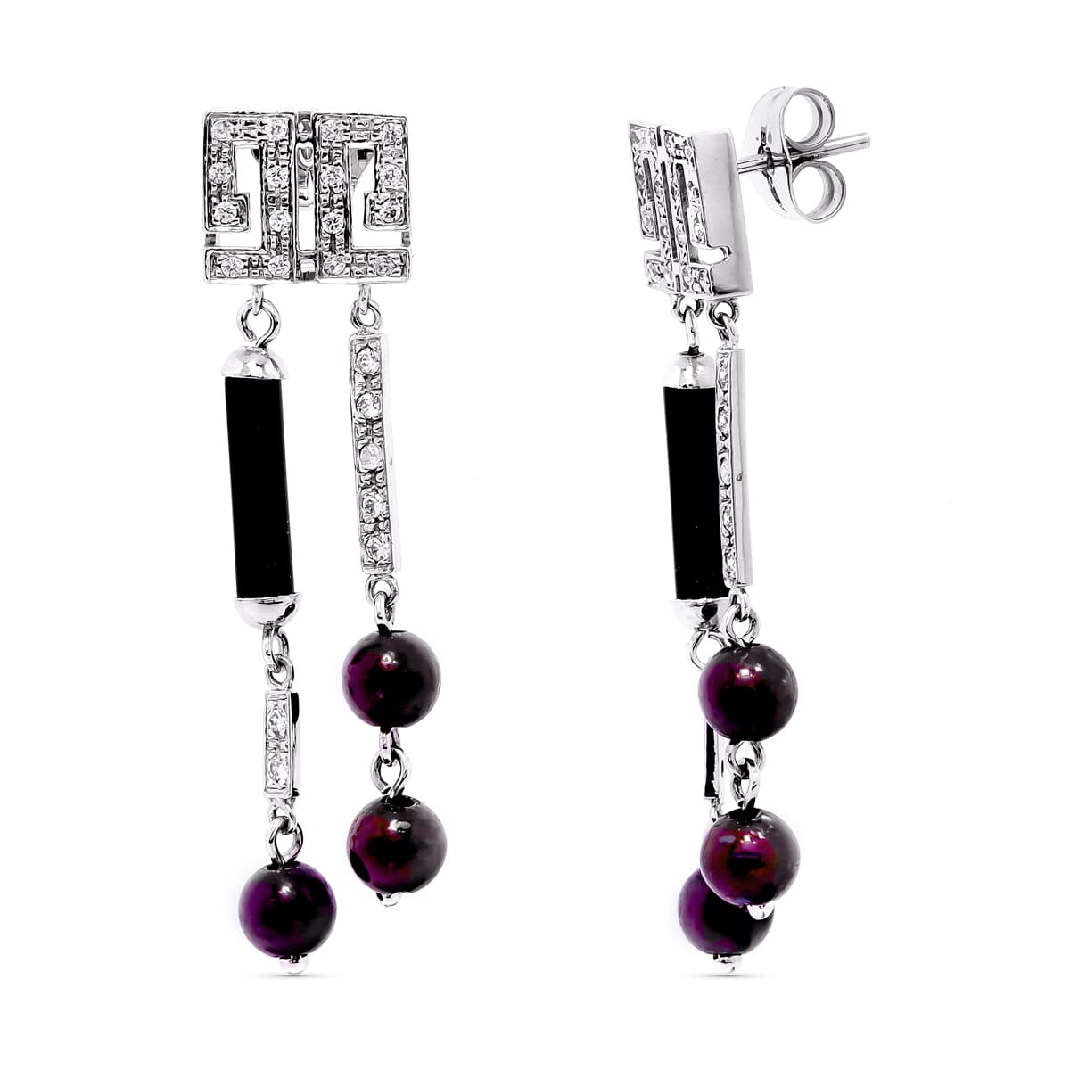 18K PENDIENTES ORO BLANCO LARGOS BOLAS Y CIRCONITAS. 43 X 10 MM. CIERRE PRESION