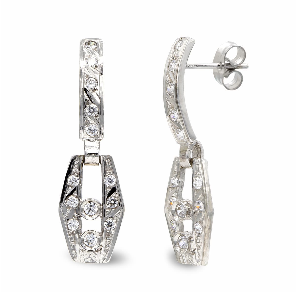 18K PENDIENTES ORO BLANCO LARGOS CIRCONITAS 24 X 7 MM.