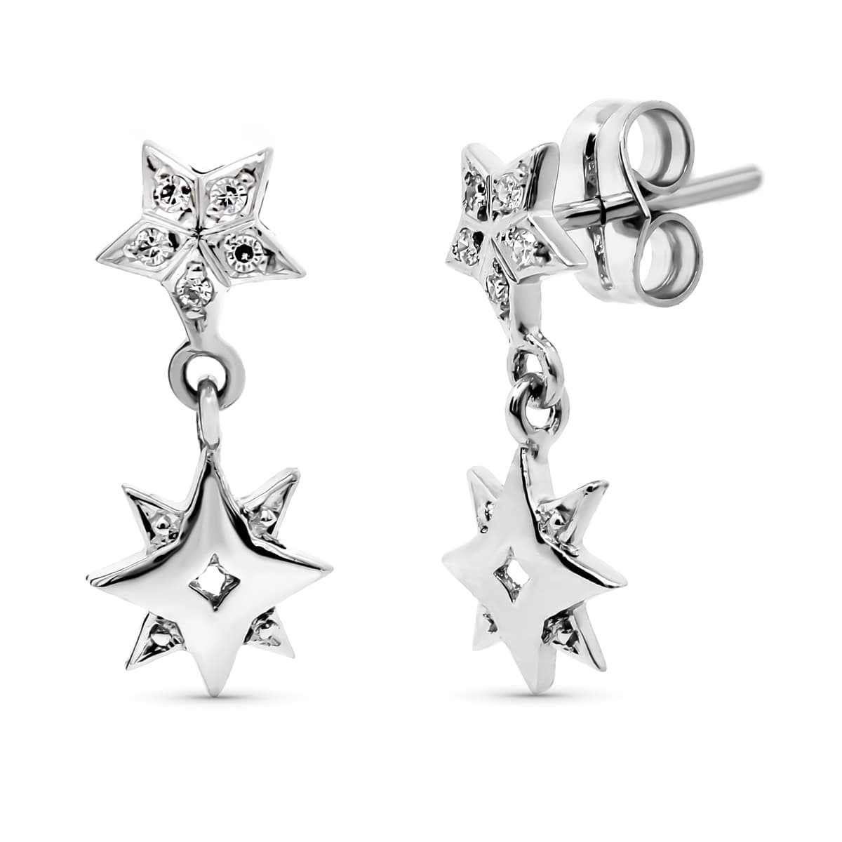 18K PENDIENTES ORO BLANCO LARGOS ESTRELLA. 17 X 7 MM. CIERRE PRESION