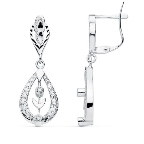 18K PENDIENTES ORO BLANCO LARGOS ESTRELLAS