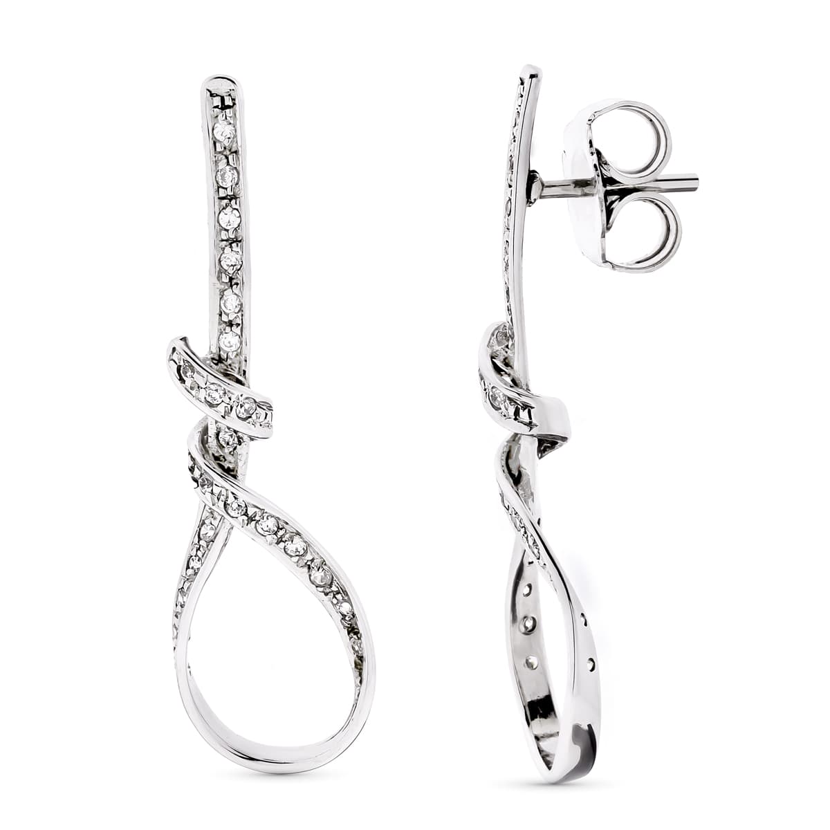 18K PENDIENTES ORO BLANCO LARGOS NUDO CIRCONITAS 41X12 MM PRESIÓN
