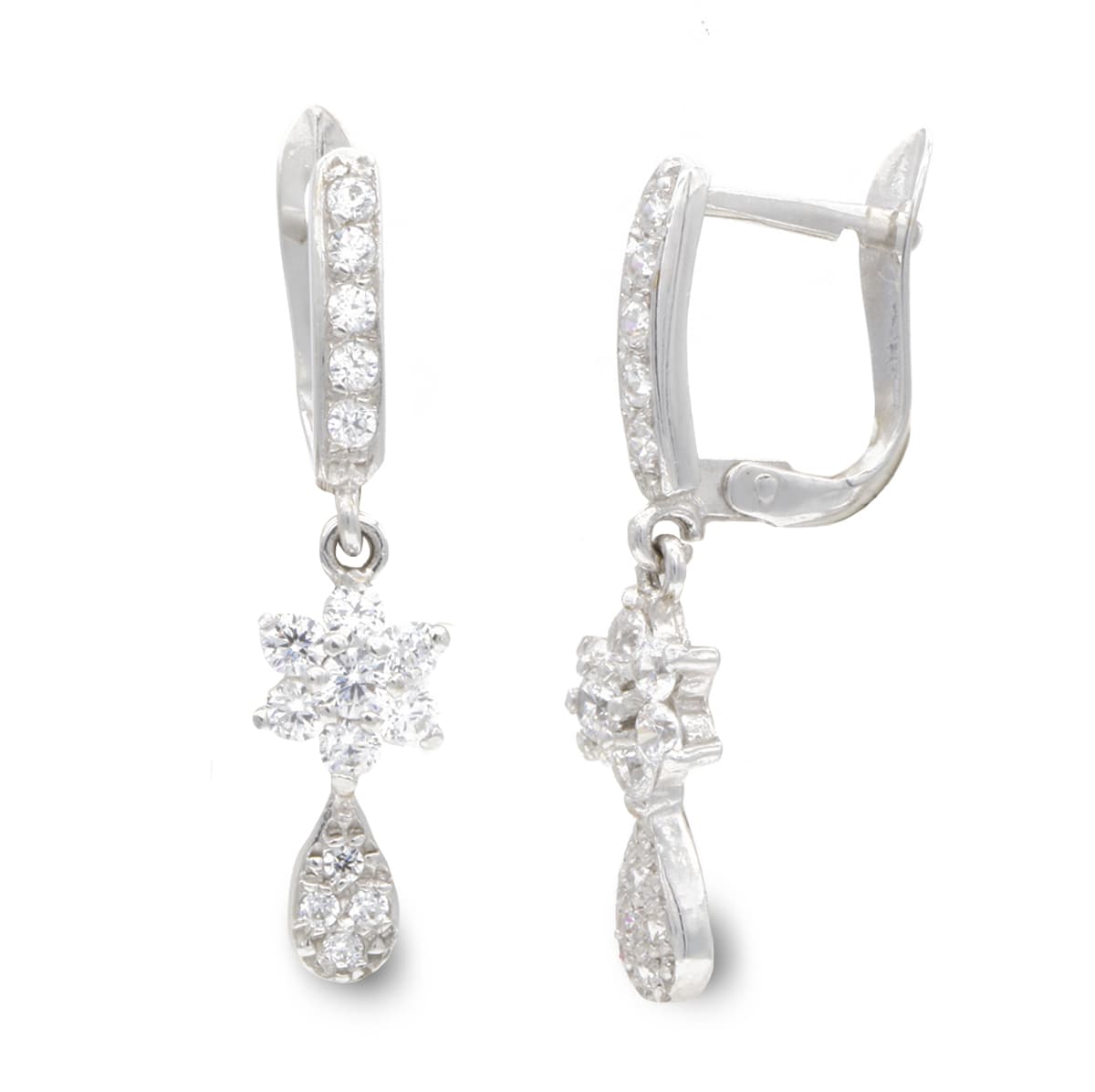 18K PENDIENTES ORO BLANCO LARGOS Y CIRCONITAS 25X5 MM
