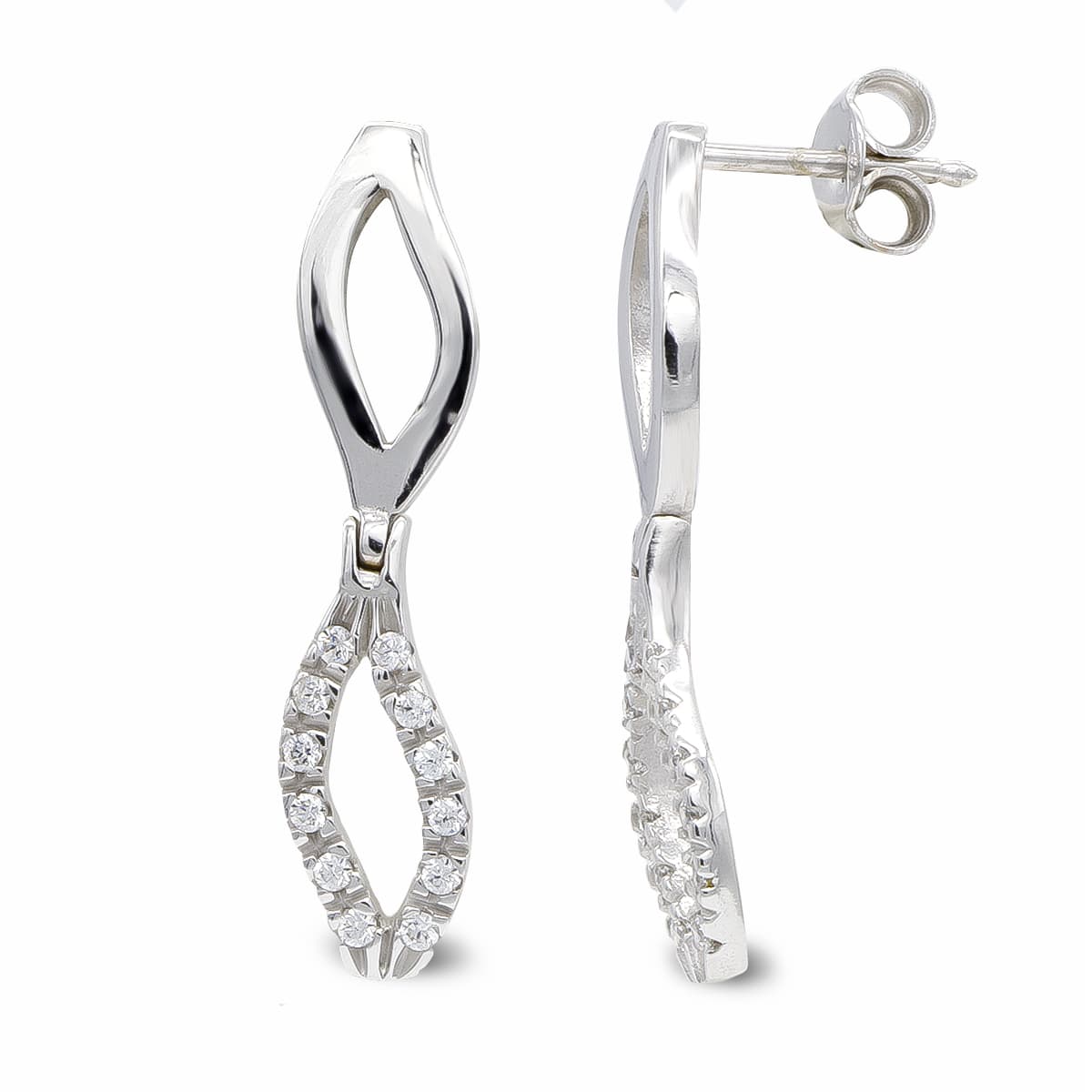 18K PENDIENTES ORO BLANCO LARGOS Y CIRCONITAS