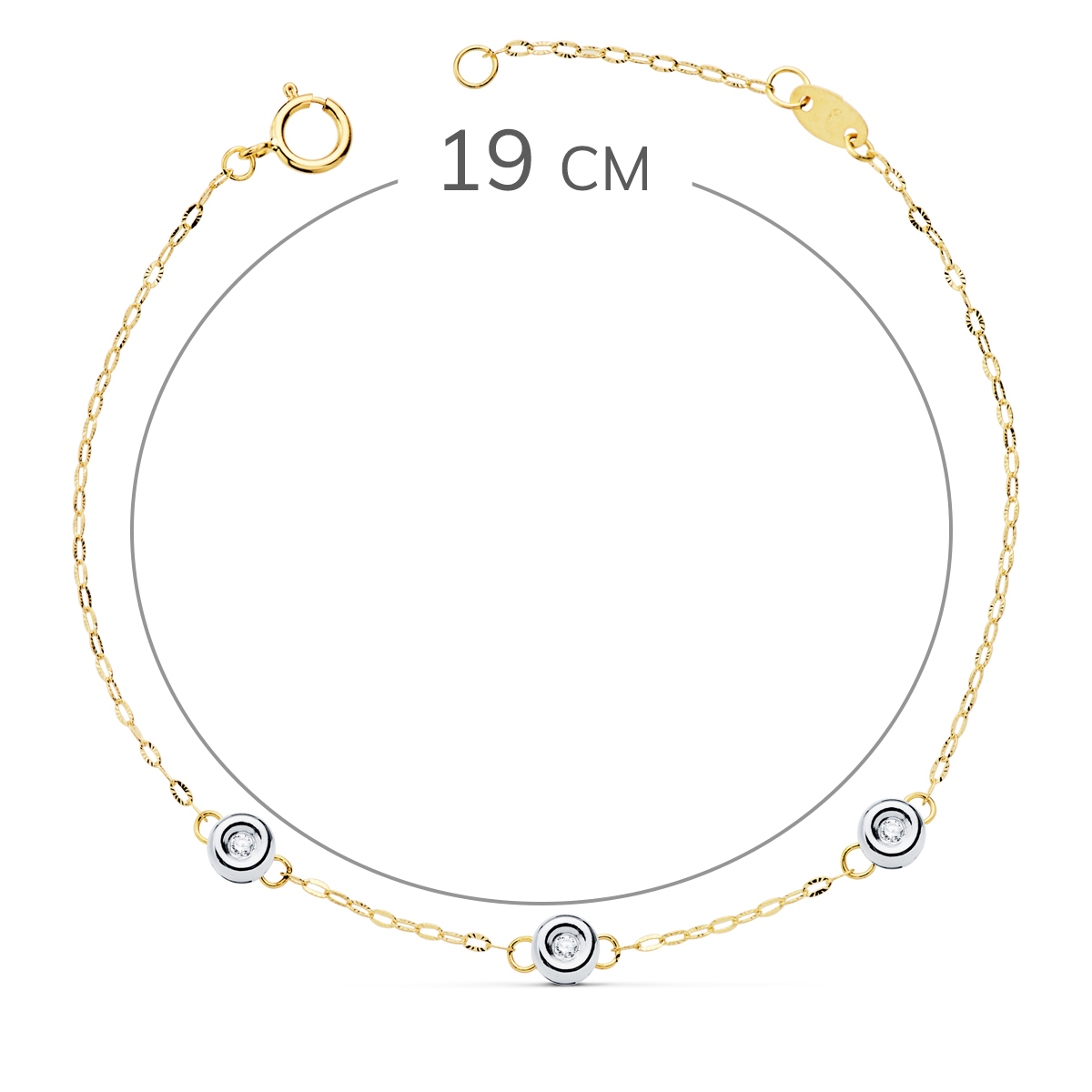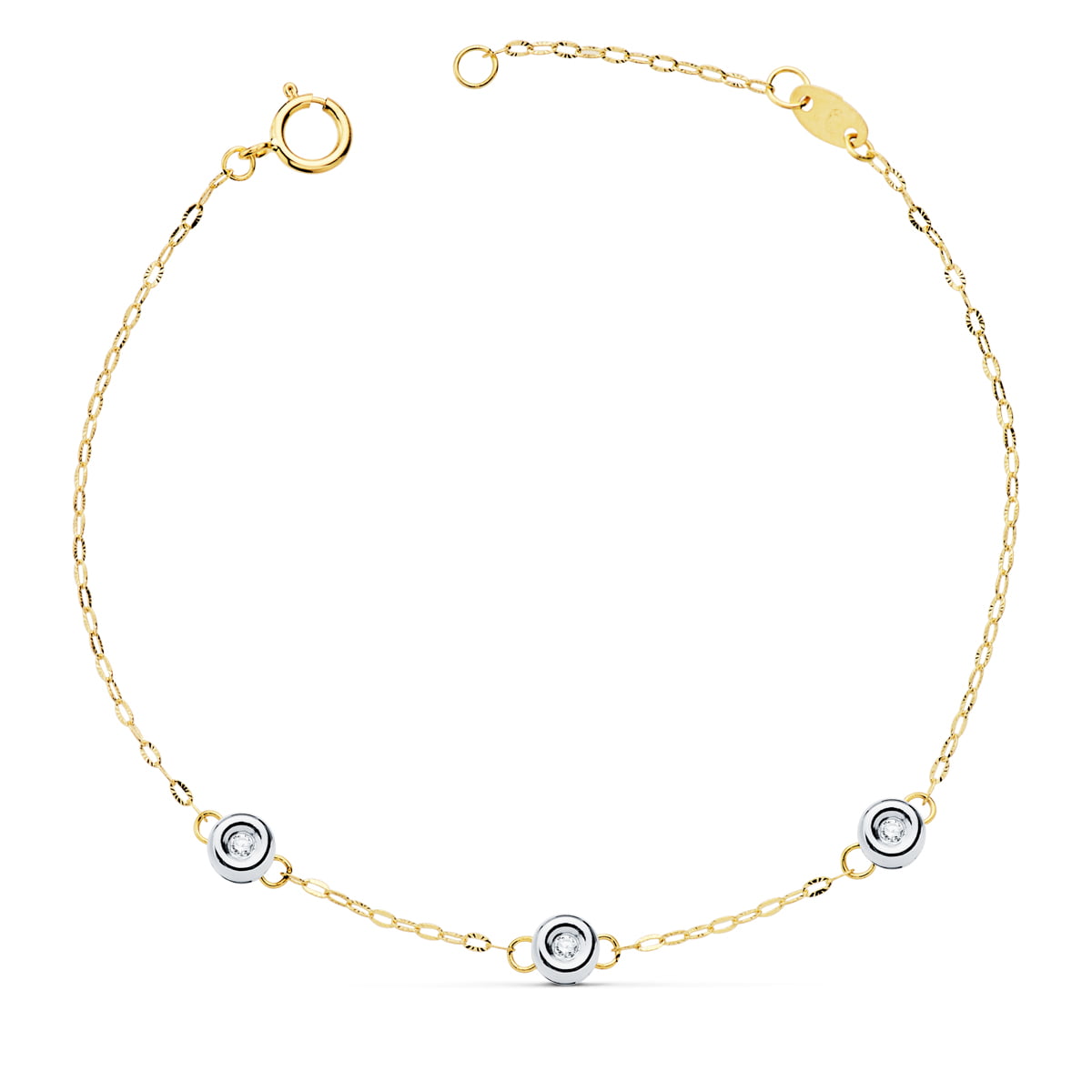 18K PULSERA BICOLOR CADENA FORZADA 19CM. TRES DIAMANTES 0.045 QTS. G-VS2