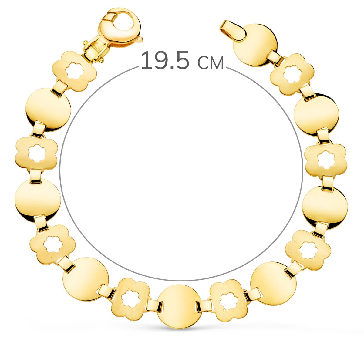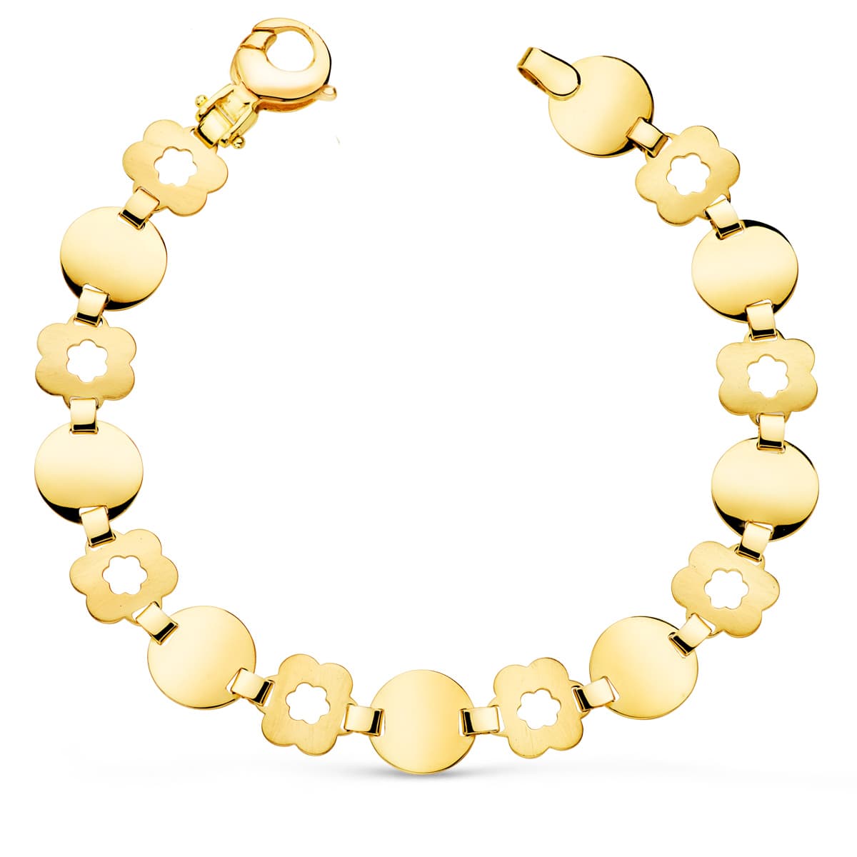 18K PULSERA ORO AMARILLO ESLABON REDONDO Y FLOR MATE. ANCHO: 10 MM LARGO: 19,5CM