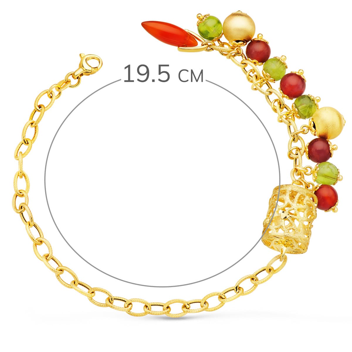 18K PULSERA ORO AMARILLO ESLABONES CON JAULA Y PIEDRAS LARGO: 19,5 CM.