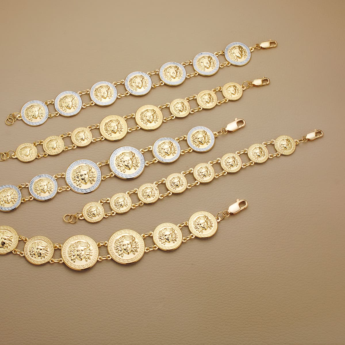 18K PULSERA ORO BICOLOR CON MEDUSAS REDONDAS EN BRILLO 15 MM LARGO 19CM