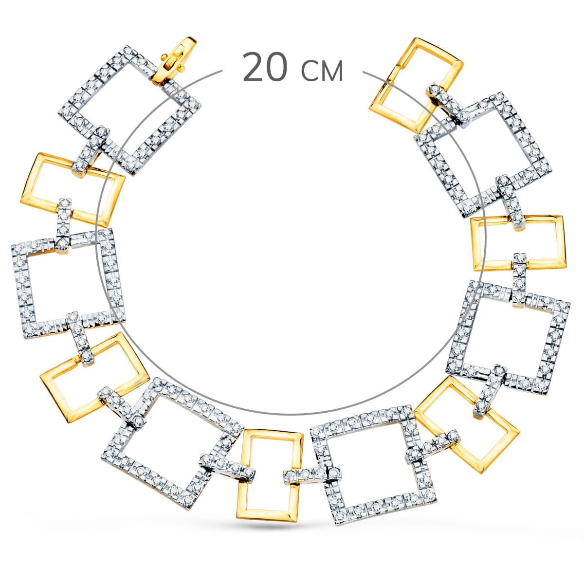 18K PULSERA ORO BICOLOR ESLABONES CUADRADOS Y MOTIVOS CON CIRCONITAS. 20 CM.