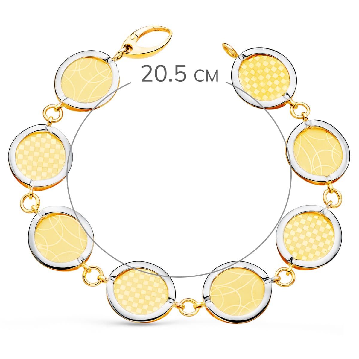 18K PULSERA ORO BICOLOR ESLABONES REDONDOS DISEÑOS MATIZADOS. 20,5 CM.