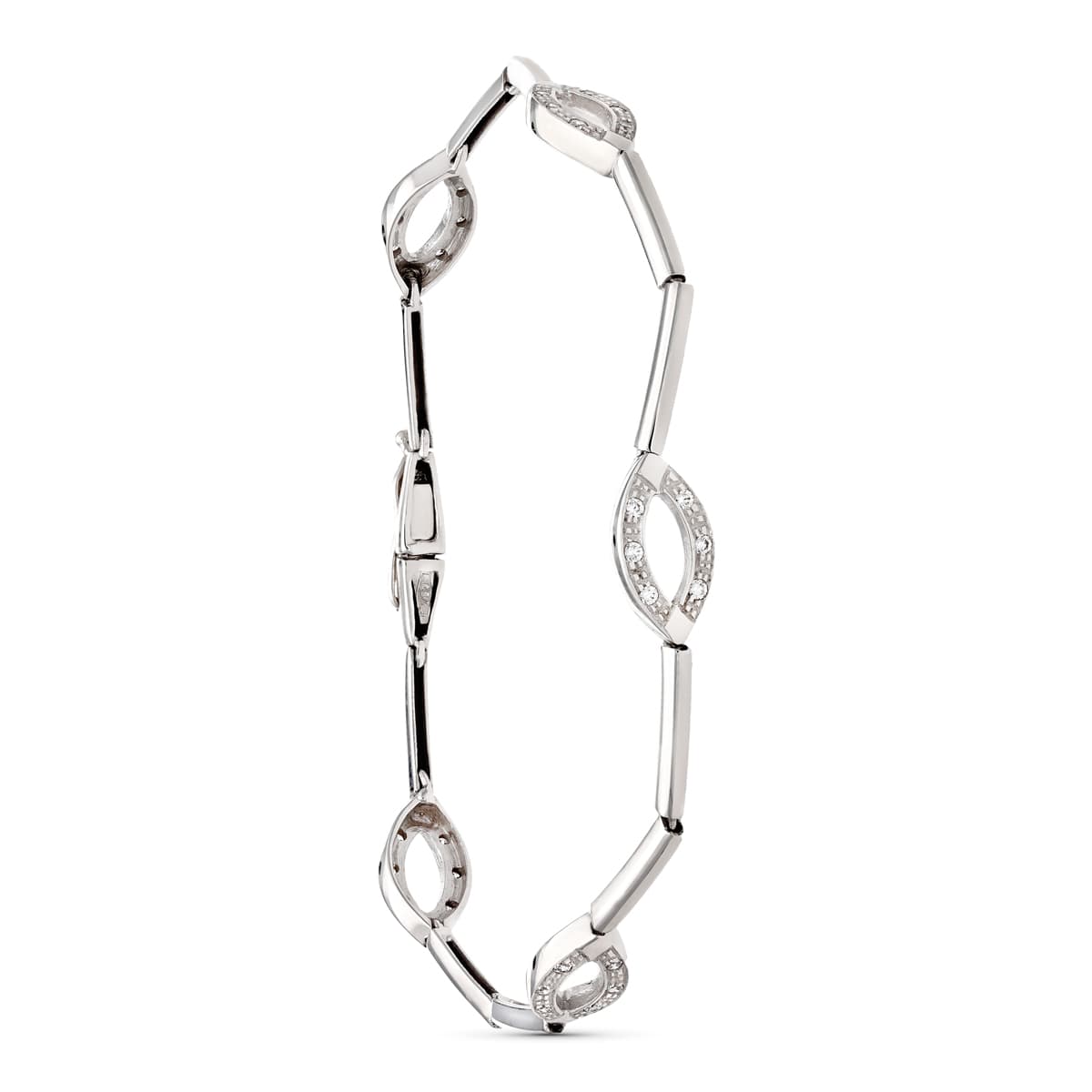 18K PULSERA ORO BLANCO BARRAS Y OVALOS CON CIRCONITA 19.5CM