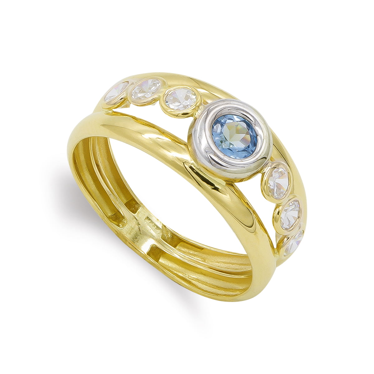 18K SORTIJA BICOLOR AGUA MARINA Y CIRCONITAS