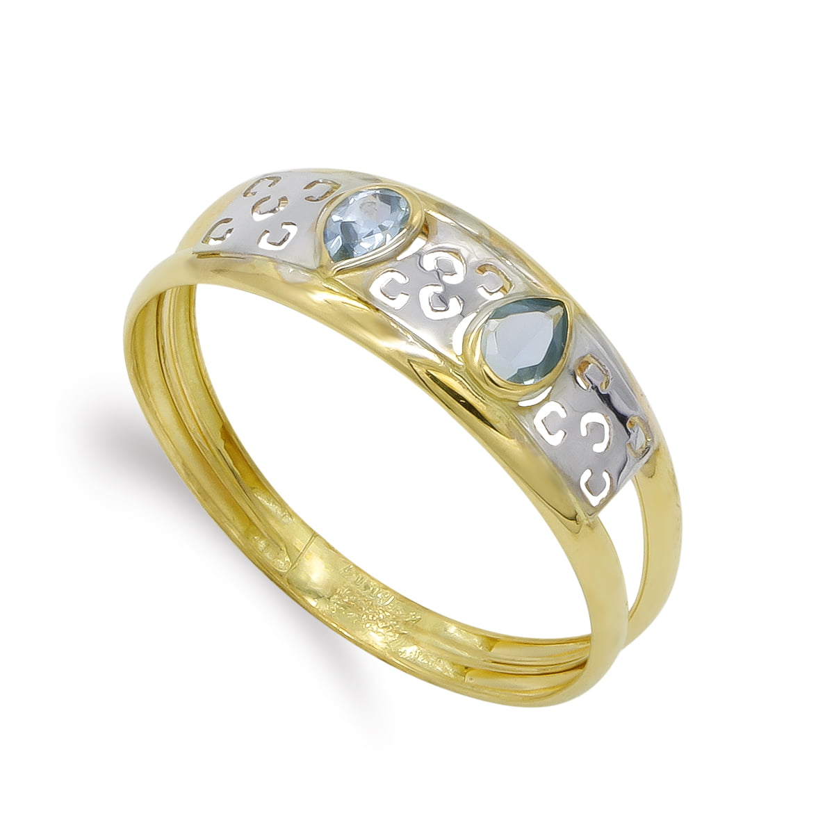 18K SORTIJA BICOLOR PIEDRAS AGUA MARINA 4 X 3MM