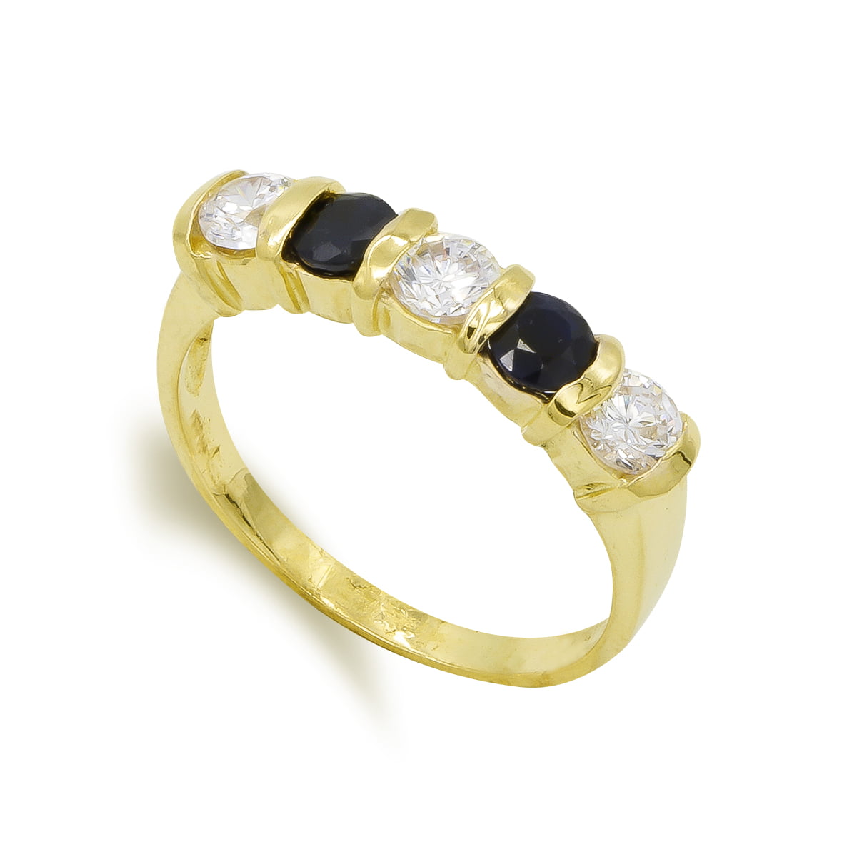 18K SORTIJA ORO AMARILLO QUINTILLO CIRCONITAS Y ZAFIROS 4MM