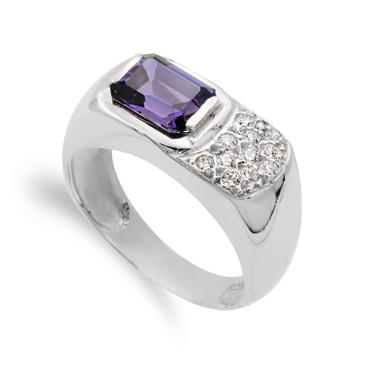 18K SORTIJA ORO BLANCO AMATISTA Y CIRCONITAS 8 X 6 MM