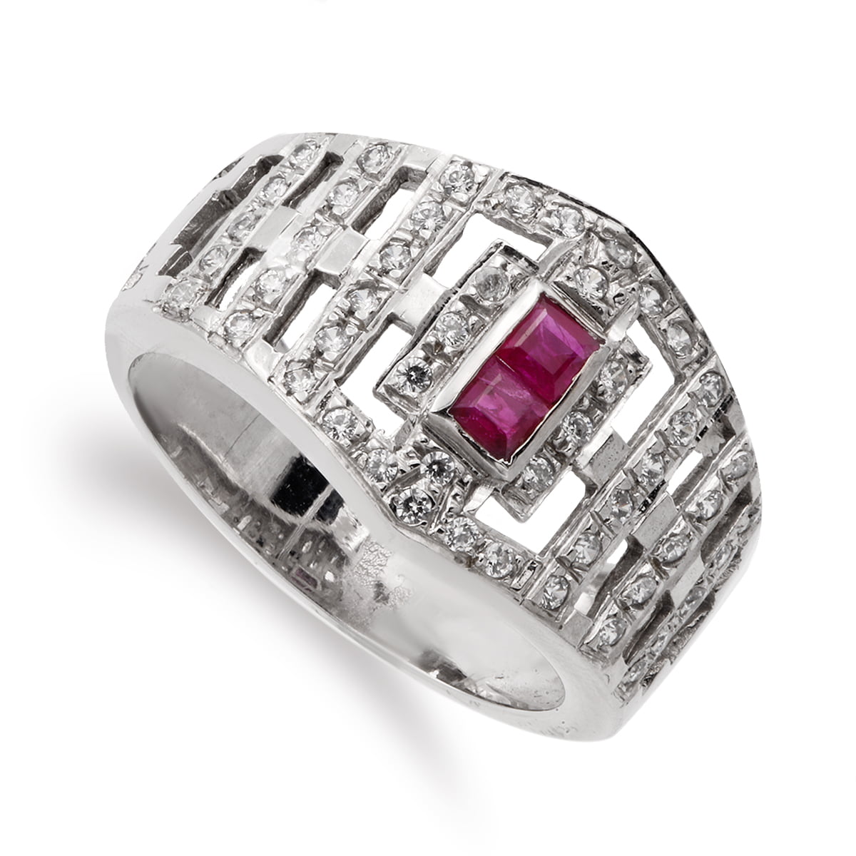 18K SORTIJA ORO BLANCO CON CIRCONITAS Y RUBÍ. ANCHO: 13 MM. CUERPO 7 MM.