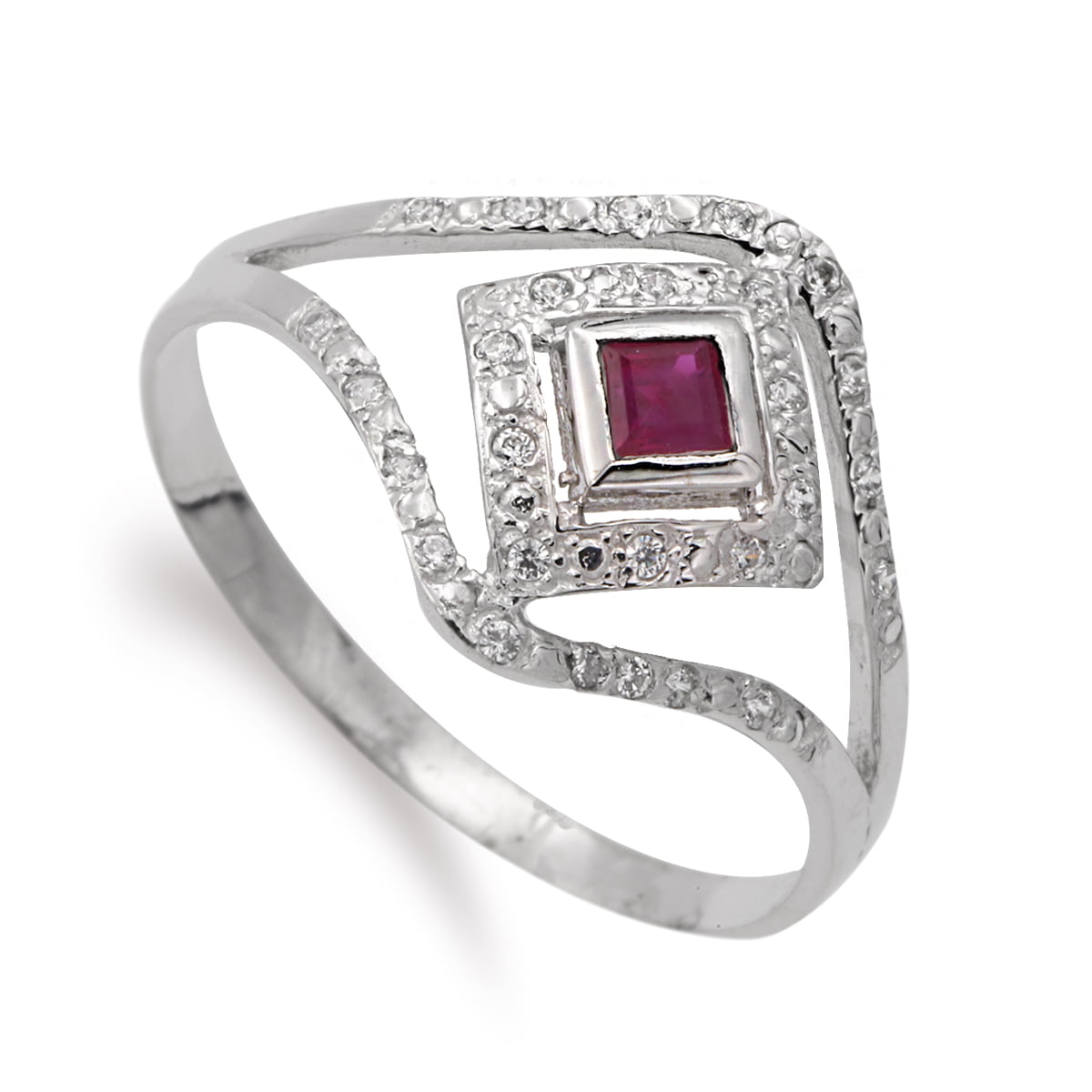 18K SORTIJA ORO BLANCO RUBI Y CIRCONITAS