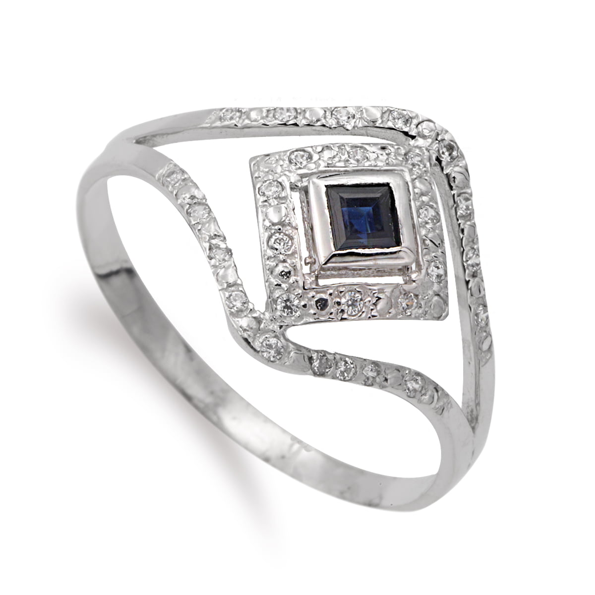 18K SORTIJA ORO BLANCO ZAFIRO Y CIRCONITAS