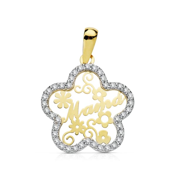9K COLGANTE MAMA CIRCONITAS FLOR 18 MM