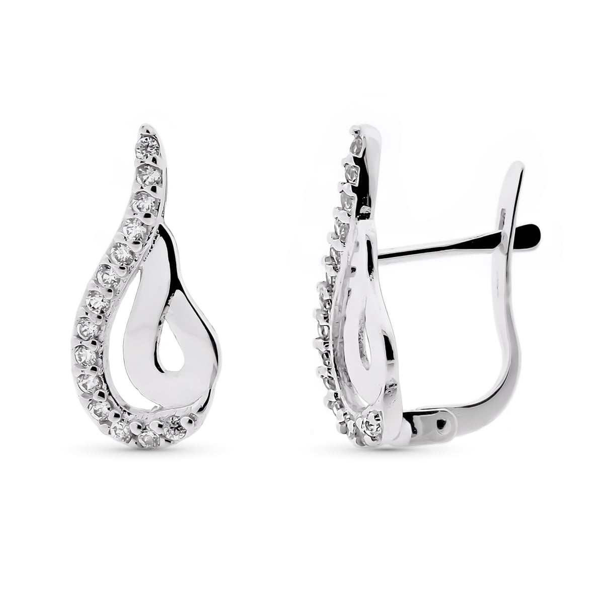 9K PENDIENTES ORO BLANCO BANDAS CARRIL CIRCONITAS 16 X 7 MM. CIERRE CATALAN