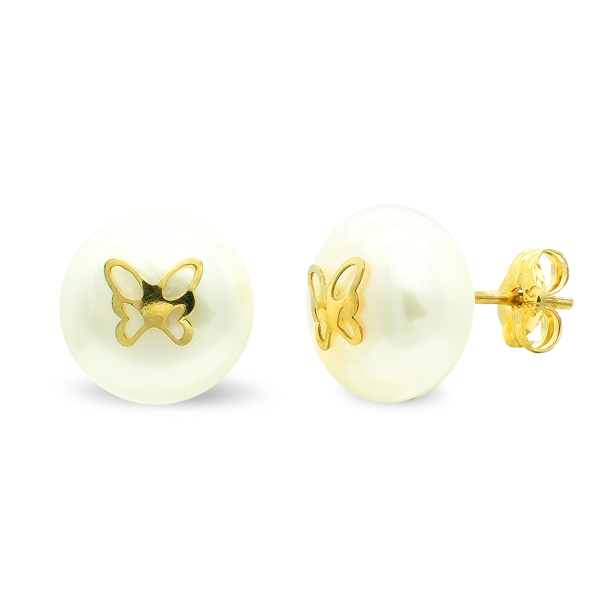 9K PENDIENTES PERLA 9 MM MARIPOSA PRESION