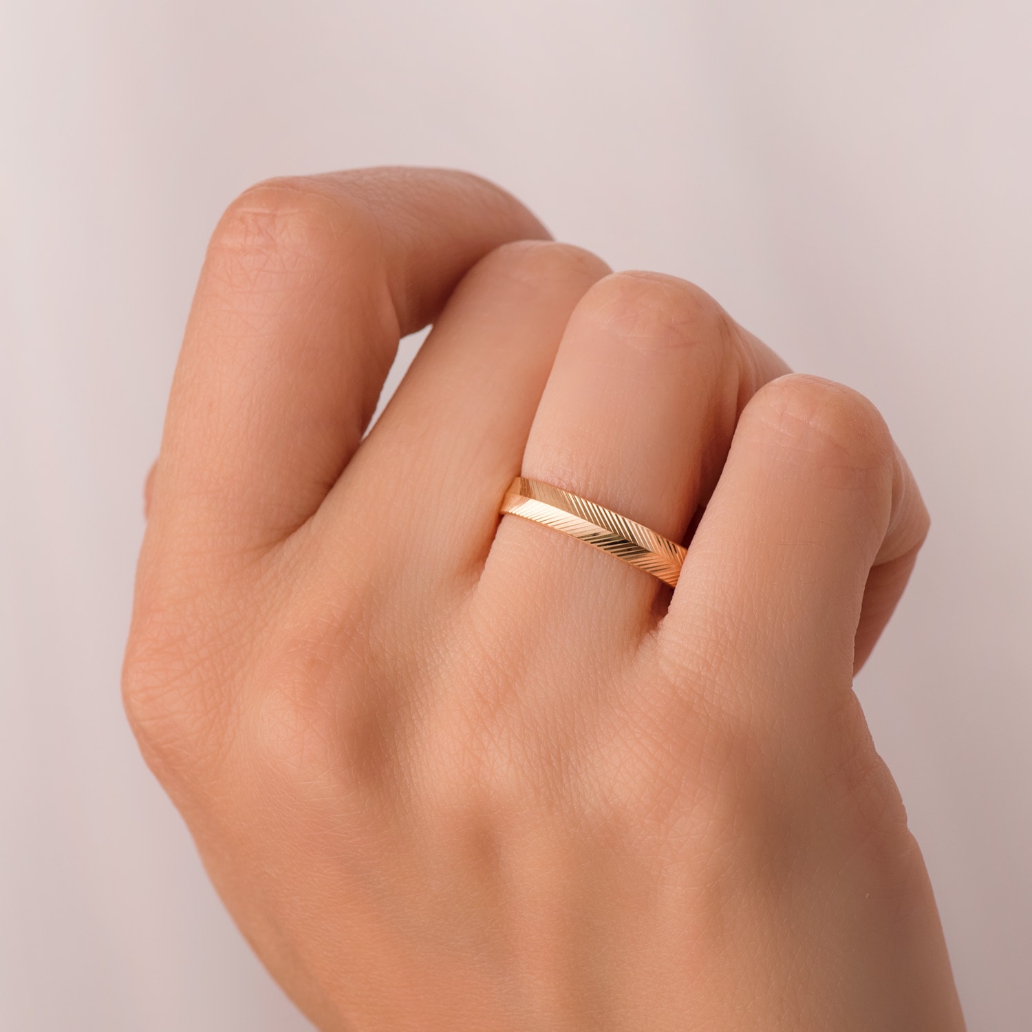 Alianza oro amarillo 18k, tallado espiga brillo, 3,5mm. Elegancia duradera para momentos especiales.